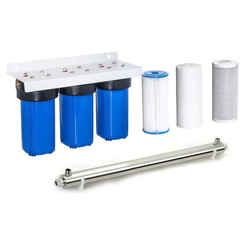 3 Stage Whole Home Water Filter + 55W UV Steriliser, 10 inch Cartridges (Wall Mounted)